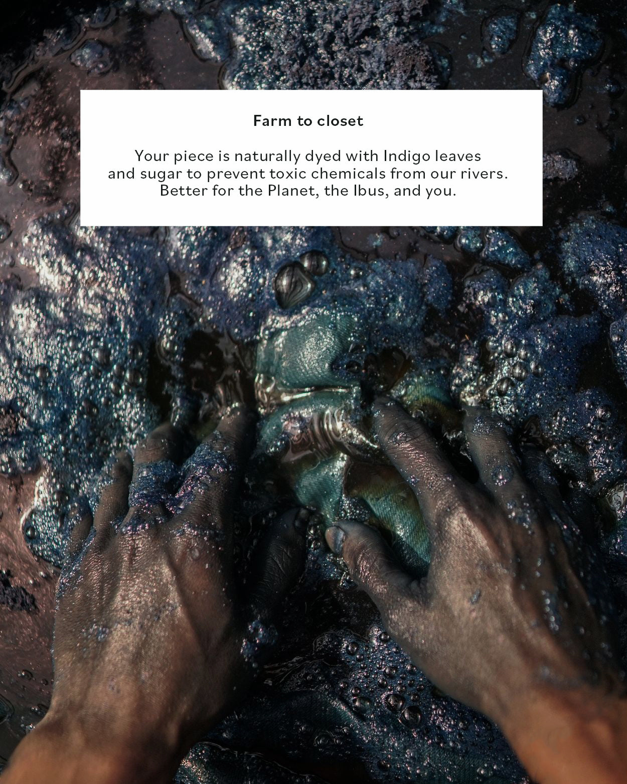 Made with your health in mind. Using only plant fibres and natural dyes, your SukkhaCitta piece lets your skin breathe. Better for you, our Ibus, and Mother Earth.