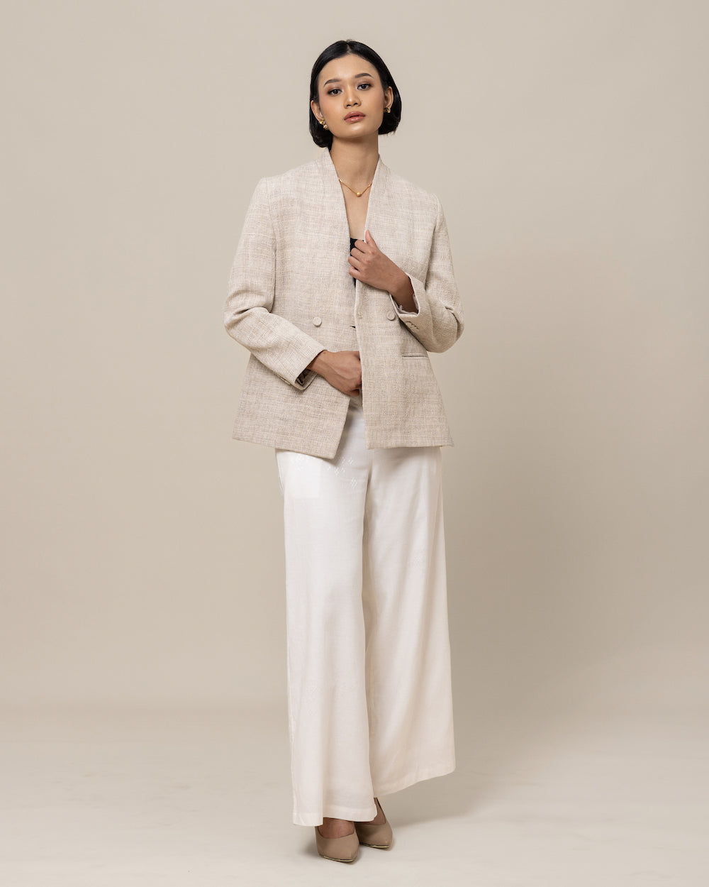 A piece that makes layering effortless. The Oversized Blazer is tailored from our sturdy handwoven regenerative cotton. With a soft Eucalyptus fibre linings to keep it breathable and comfortable. Keeping you warm during transitional seasons and all year round.